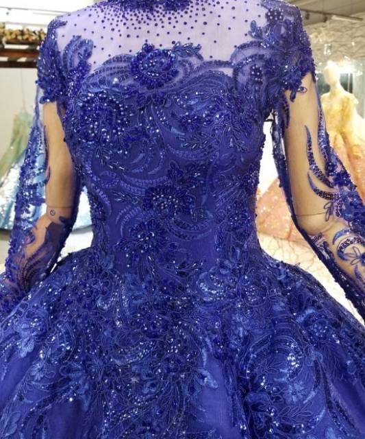 Gaun pengantin warna biru (blue colour wedding dress). Royal blue 3/4 sleeve lace embroidery maxi wedding party ball gown / gaun pengantin royal blue 3/4 lengan bordir renda · promosi · cicilan · ukuran · warna.